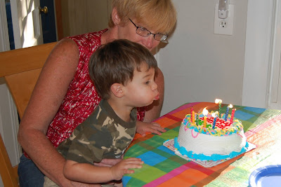 Alexander was very excited to help her open presents even though he didn't really care what they actually were...he just wanted to take out the tissue paper!Then he got very excited to put in the candles & sing Happy Birthday to Mimi! He helped her blow out the candles (not bad for a little boy who was wheezy earlier in the week too)!
